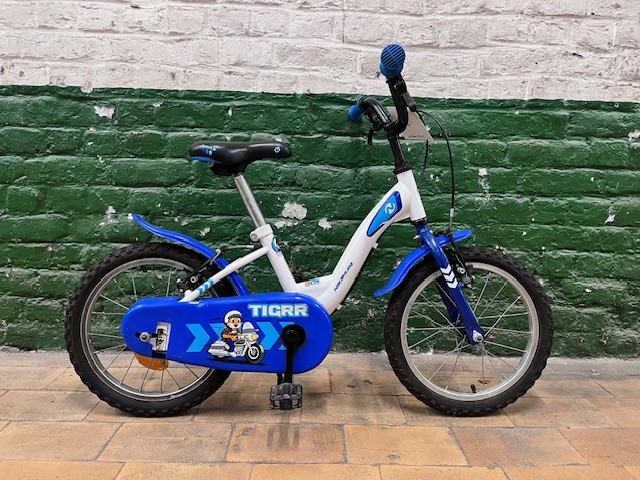 Vélo 16″ pour que les enfants de 4 à 6 ans, mesurant 105cm à 120cm, apprennent à rouler comme les grands.